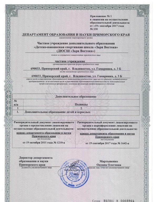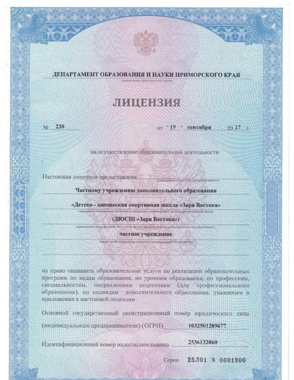 Полное наименование образовательной организации* ЧАСТНОЕ УЧРЕЖДЕНИЕ ДОПОЛНИТЕЛЬНОГО ОБРАЗОВАНИЯ "ДЕТСКО-ЮНОШЕСКАЯ СПОРТИВНАЯ ШКОЛА "ЗАРЯ ВОСТОКА"